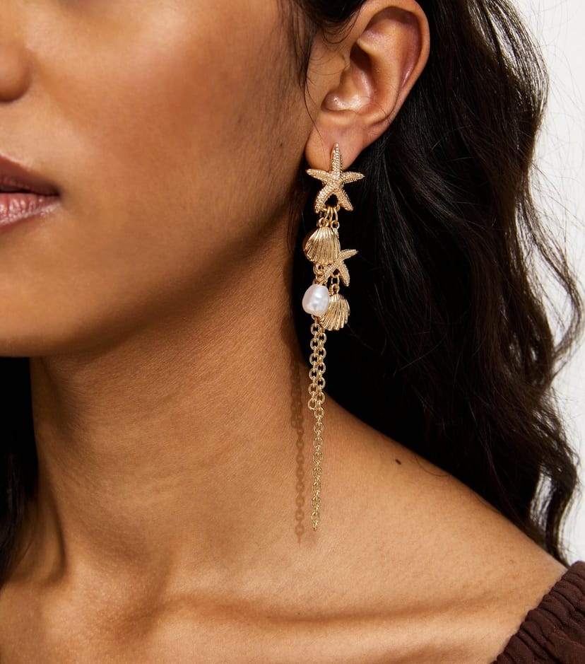 The New Look Gold Tone Starfish Chain Drop Earrings is available in sizes one size.