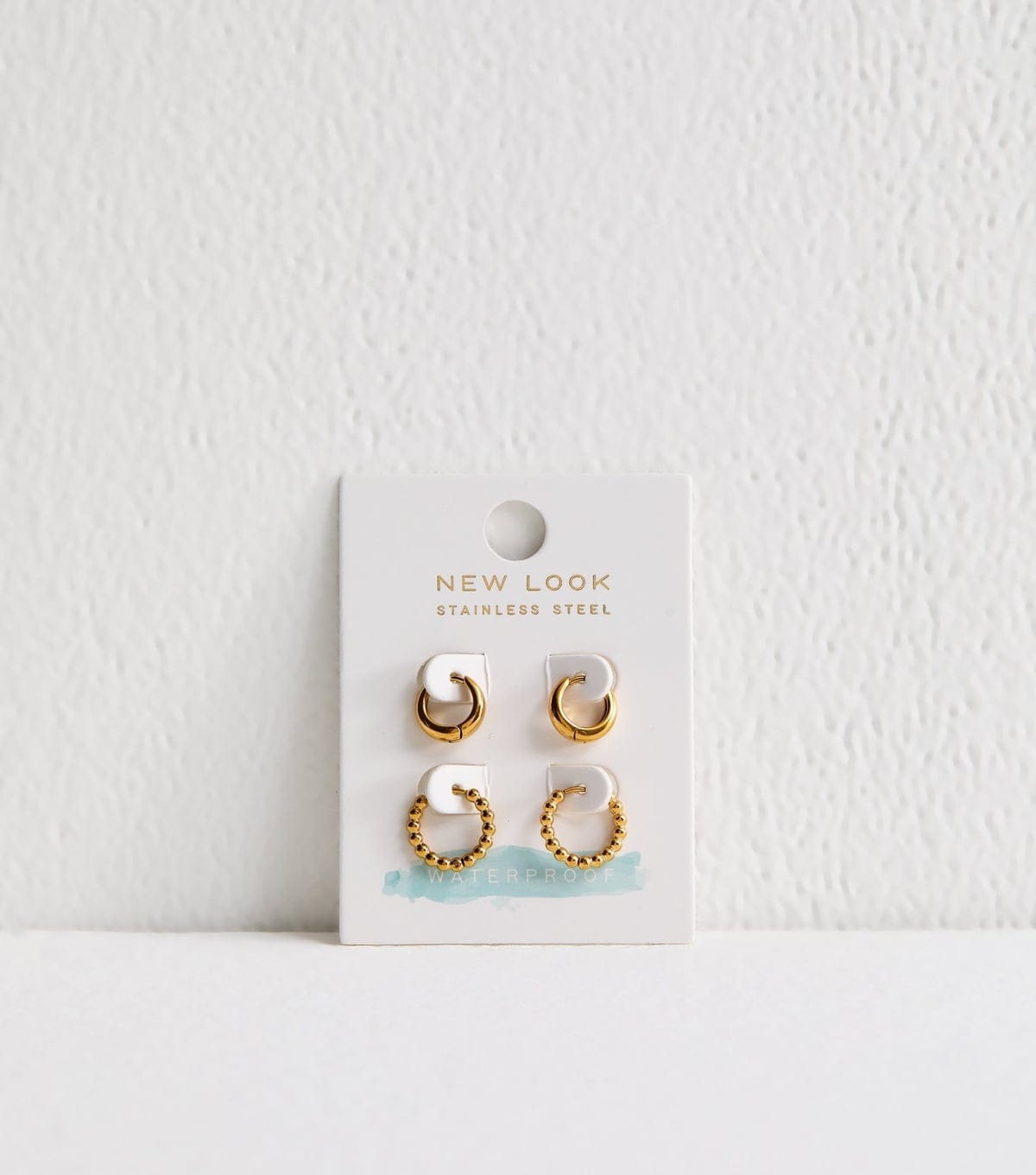 These gold tone hoop earrings from New Look add a touch of sparkle to any outfit. Made from 100% stainless steel, they are waterproof and corrosion-resistant. Perfect for everyday wear or special occasions.