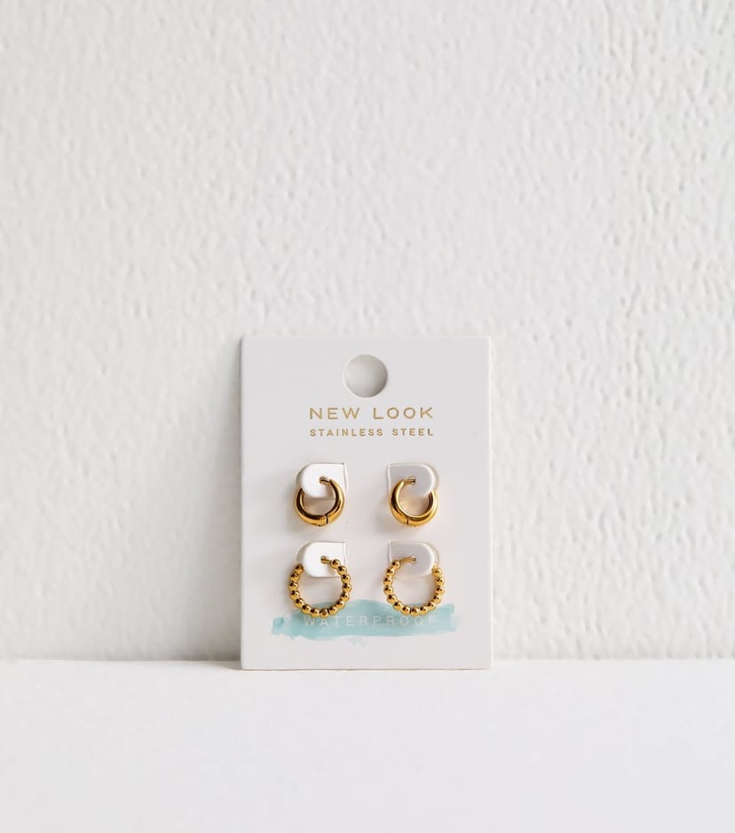 The New Look Gold Tone Waterproof Hoop Earrings Pack of 2 is made from stainless steel.