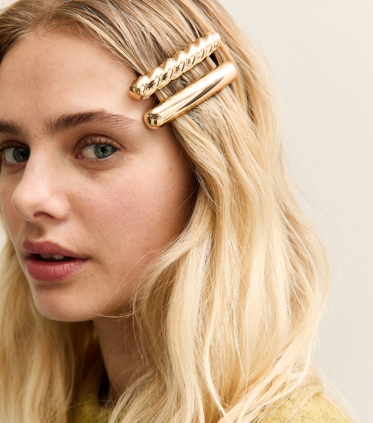 Elevate your everyday look with this chic pack of two gold-tone hair slides from New Look. One features a sleek plain design, while the other boasts a trendy twisted pattern. Perfect for adding a touch of glamour to any hairstyle.