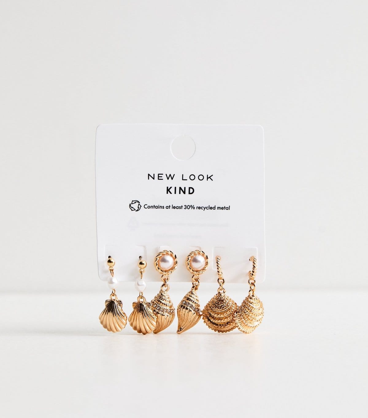 The New Look Gold Tone Seashell Stud Earrings Pack of 3 is ideal for casual, beach, daytime.