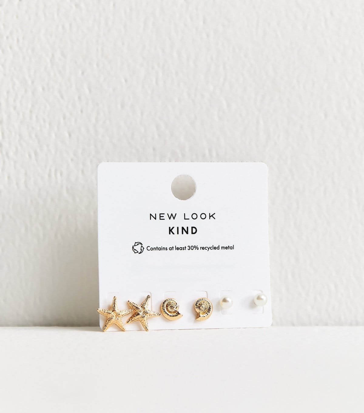 View New Look UK's returns policyThis pack of glimmering stud earrings has three cute seaside designs. It includes a pair of textured starfish seashells and faux pearls that can be easily mixed and matched. Perfect for adding a touch of coastal charm to any outfit.