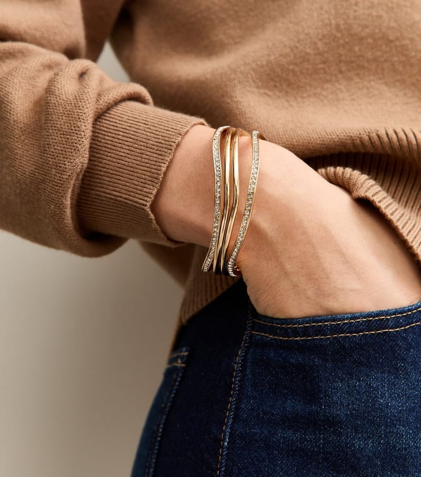 The New Look Gold Tone Diamante Curve Bangles Pack of 4 is ideal for evening, party, date-night.