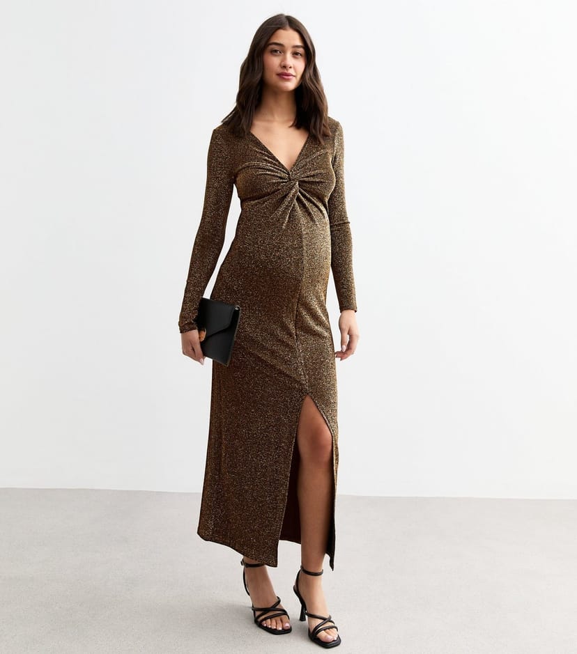 The New Look Gold Shimmery Jersey Midi Dress is available in sizes 18.