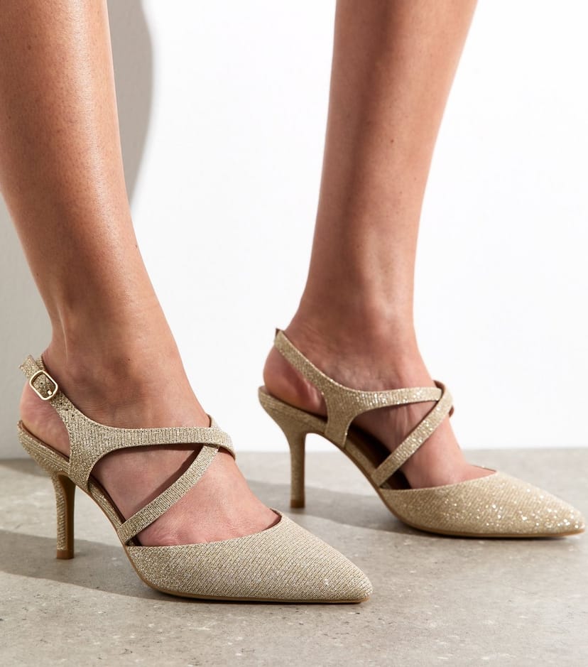 The New Look Gold Shimmer Asymmetric Stiletto Court Shoes is ideal for party, evening, special events.