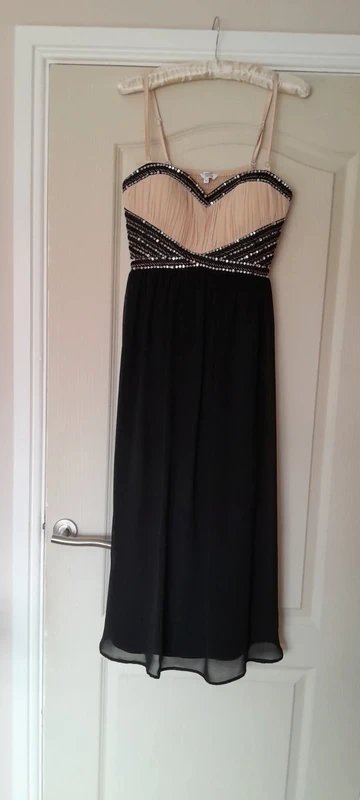 The New Look Strappy Evening Dress in Black and Cream is available in sizes M.