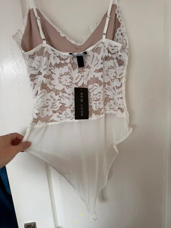 The New Look Cream Lace Bodysuit is available in sizes M.