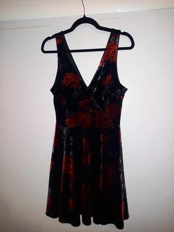 The New Look Black Floral Print Mini Skater Dress is available in sizes M.