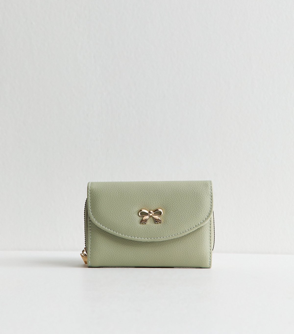 Stylish green faux leather purse with a bow-plaque design. Compact and sleek, it's perfect for everyday use to organise your essentials. Features a gold hardware accent.
