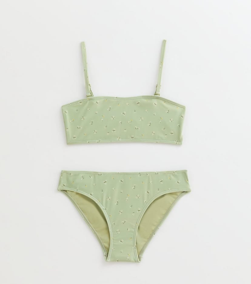 The New Look Green Ditsy Print Bikini Set for Girls is available in sizes 12-13 years.
