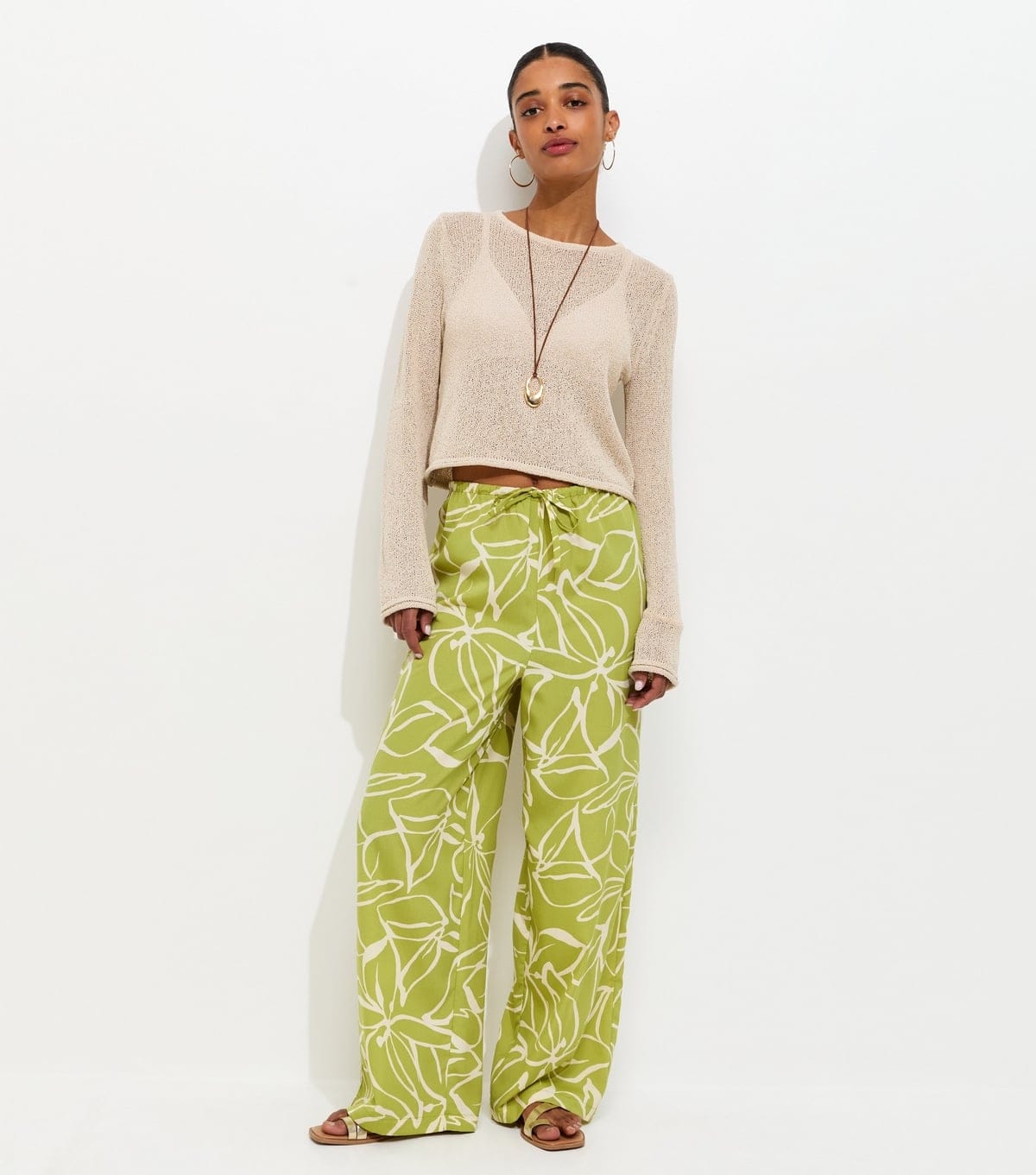 New LookNew Look Green Crepe Floral Print Wide Leg Trousers
