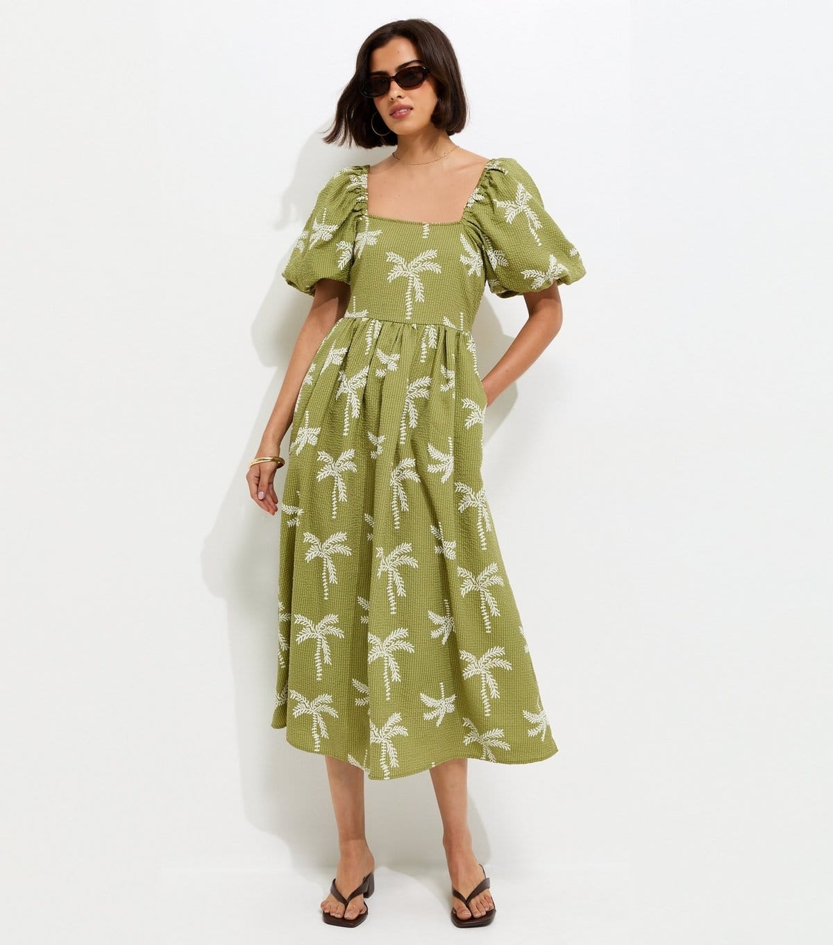 New LookNew Look Green Embroidered Palm Tree Midi Dress