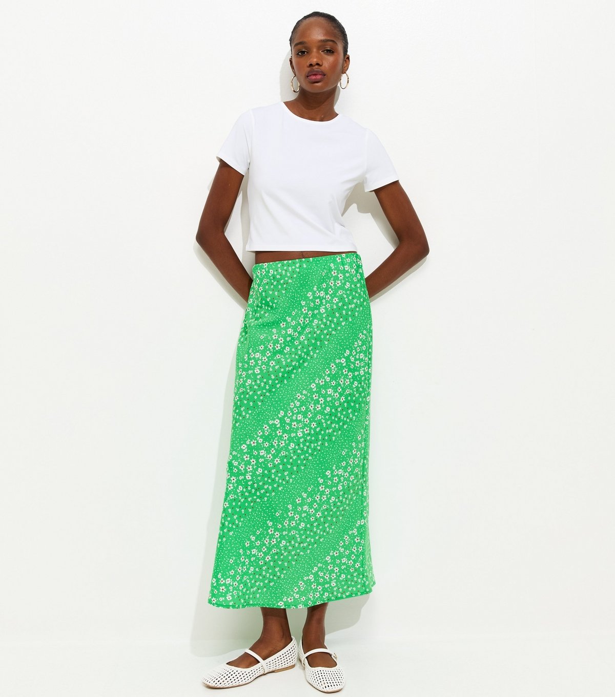 The New Look Green Floral Print Crepe Midi Skirt is available in sizes 10, 12, 14, 16, 18, 20, 22, 6, 8.