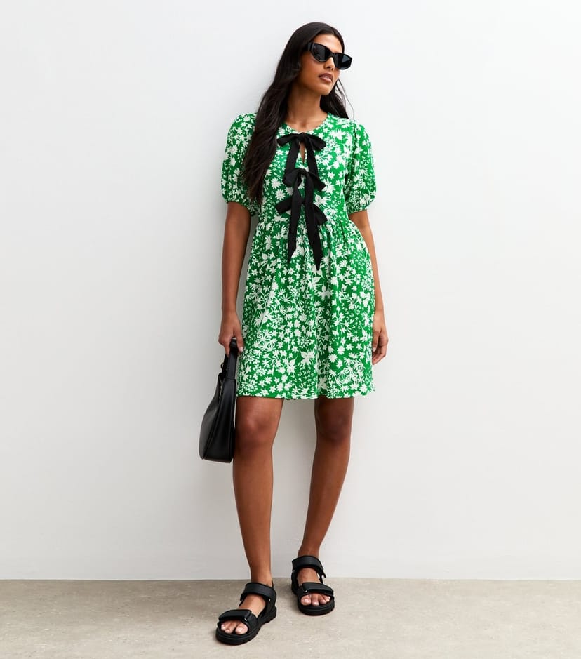 The New Look Green Floral Textured Jersey Mini Dress is available in sizes 10.