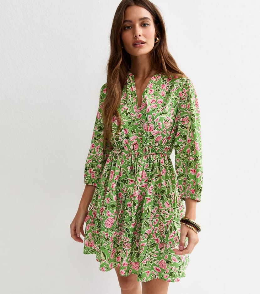 The New Look Green Floral Tiered Mini Dress is ideal for casual, daytime, beach.