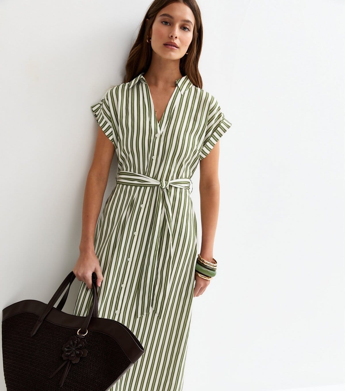 “Pair with white loafers and a structured tote for a polished office look, or with sandals and a sun hat for a weekend outing.”