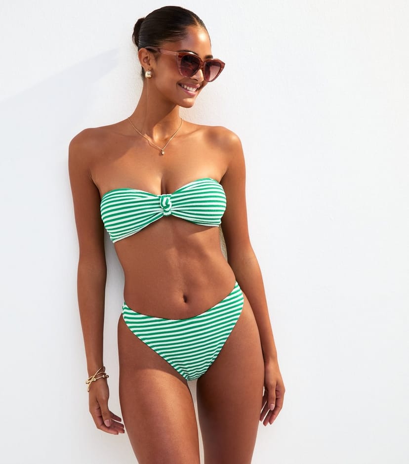 The New Look Green/White Striped Bikini Bottoms is made from jersey.