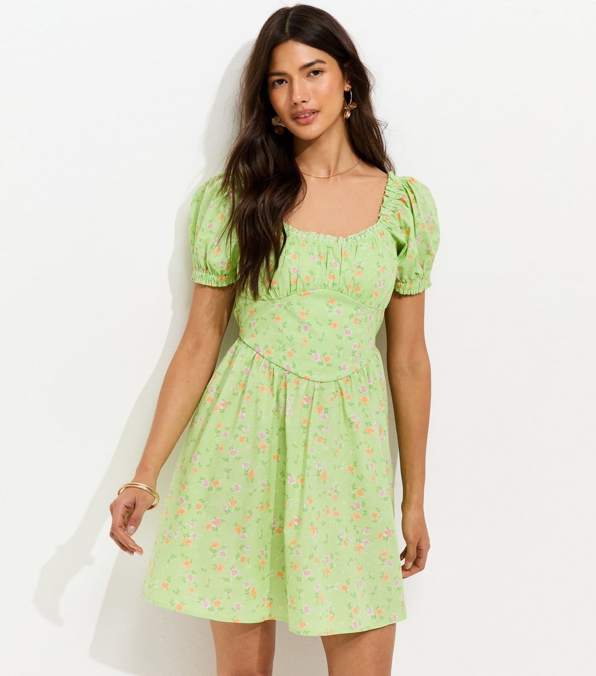 New LookNew Look Light Green Floral Print Milkmaid Mini Dress