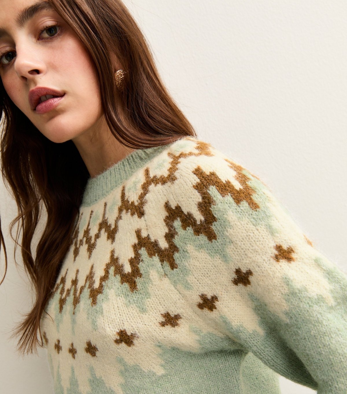 The New Look Mint Green Fairisle Jumper is made from knit.