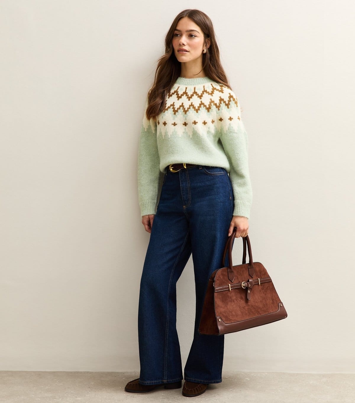 The New Look Green Fair Isle Knitted Jumper is available in sizes 10, 8.