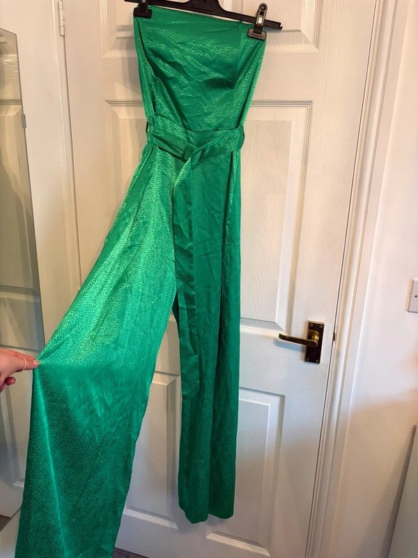 The New Look Satin Printed Jumpsuit in Green is available in sizes XXXL, XXL, XL, XS, L, M, S.