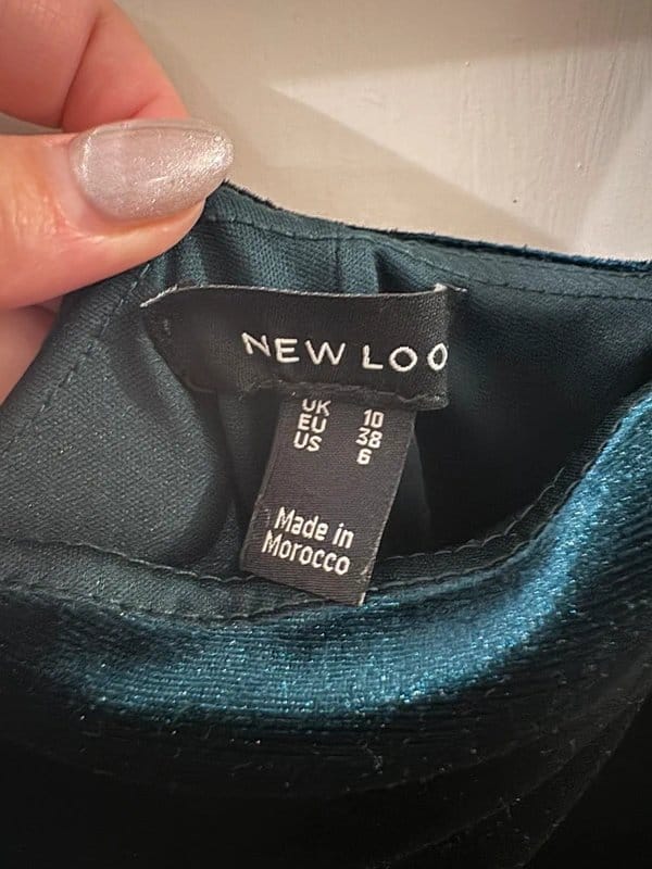 The New Look Dark Green Velvet Mini Dress Size 10 is made from velvet.