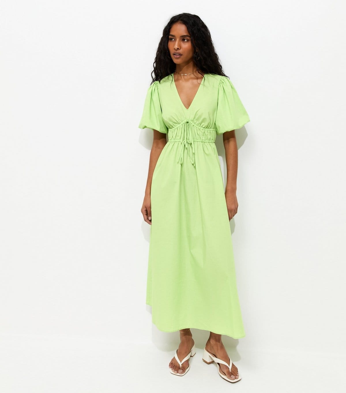 View New Look UK's returns policyRefresh your wardrobe with this bright green midi dress. It exudes charming appeal with its puff sleeves and slender waisted fit. Perfect for casual outings or summer events.