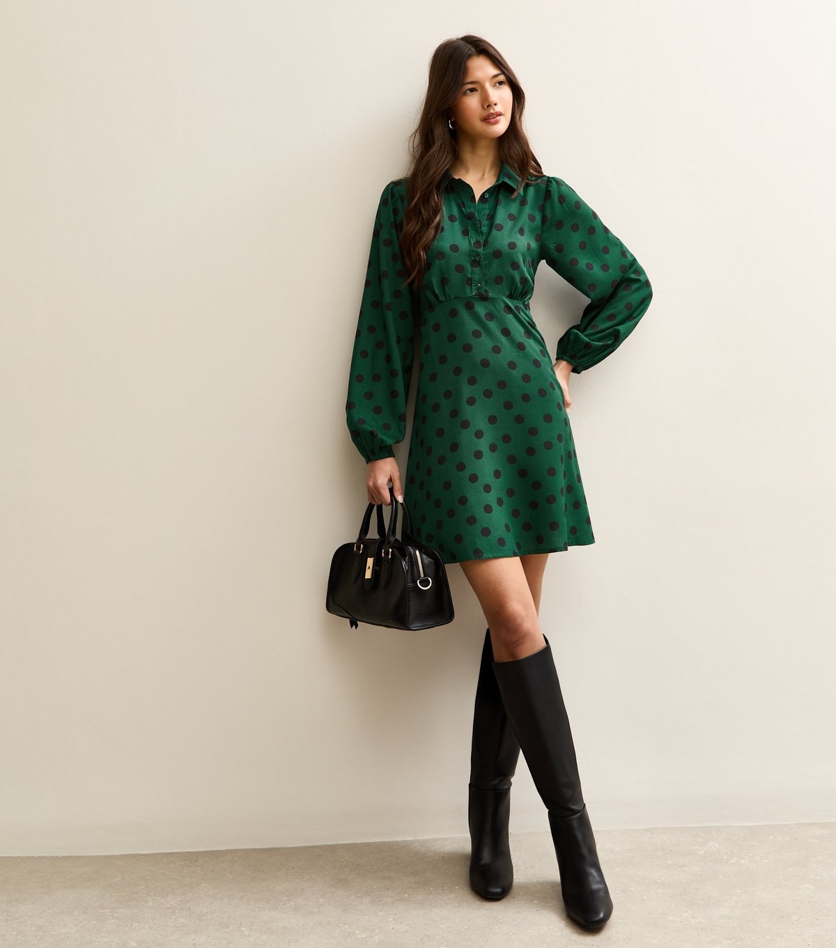 The New Look Bright Green Polka Dot Long Sleeve Mini Shirt Dress is made from woven.