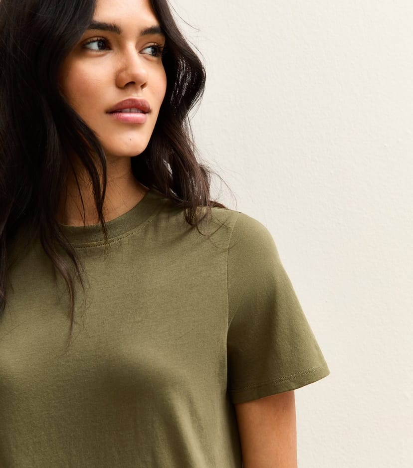 Casual green cotton crew neck T-shirt from New Look. Perfect for layering or wearing solo. Made from soft cotton jersey, it offers a regular fit and standard length.