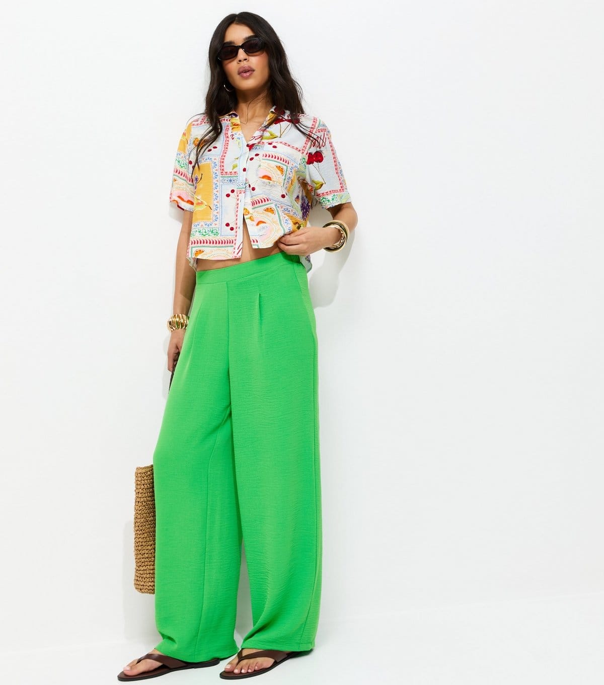 View New Look UK's returns policyBright green wide leg trousers with a relaxed fit and mid-rise waist. Perfect for a laid-back vibe and adding a pop of colour to your wardrobe.