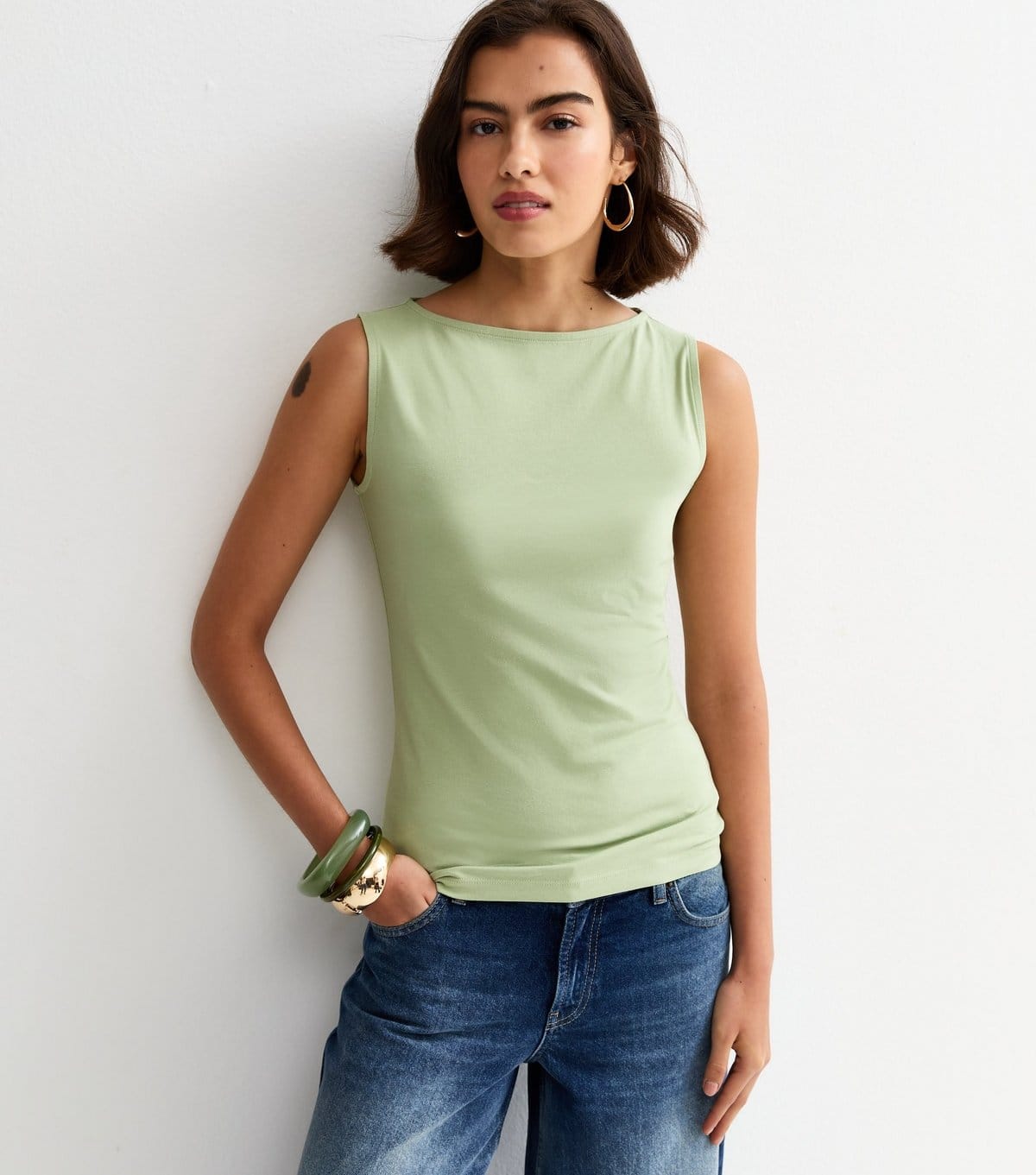 Refresh your spring wardrobe with this green stretch jersey vest top. Featuring an elegant slash neckline, it's the perfect top for the warmer months. Lightweight and breathable, ideal for casual outings.