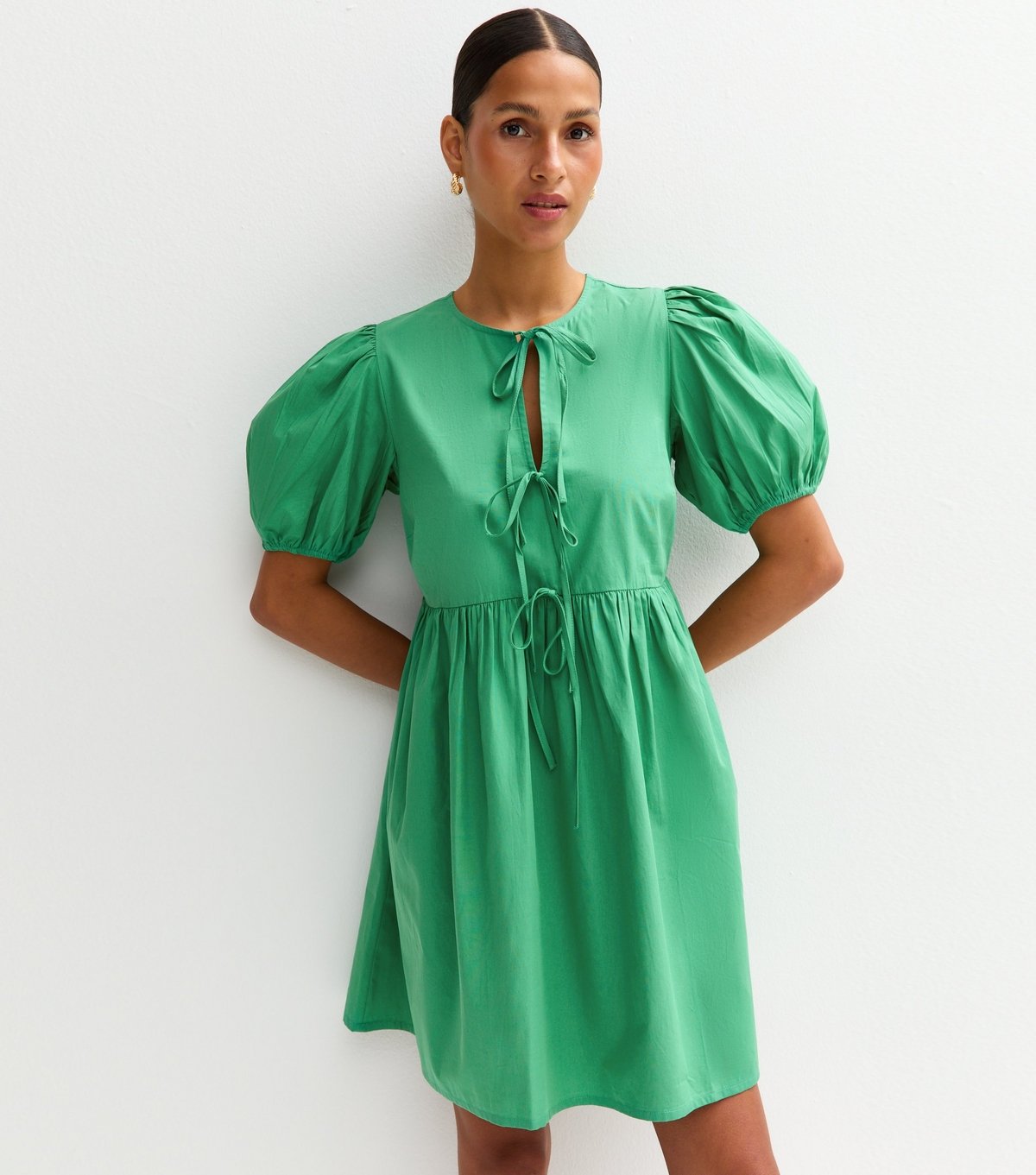 The New Look Green Woven Tie Front Bow Mini Dress is made from woven.