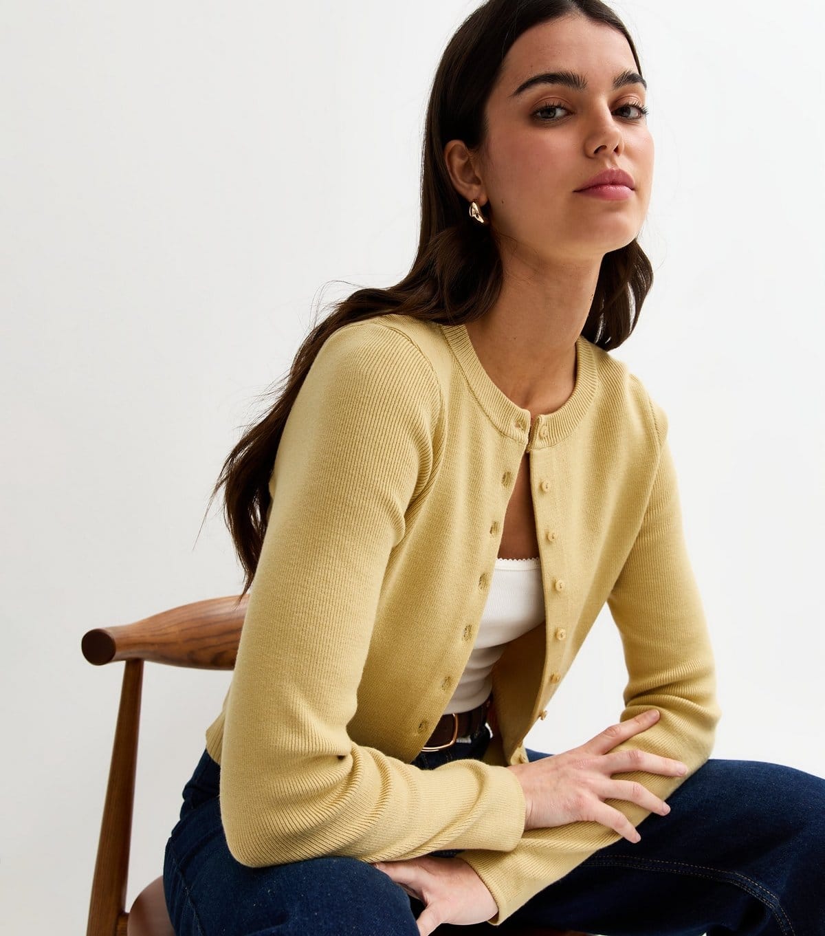 Back to New Look Light Green Compact Knit Crew Neck Cardigan →