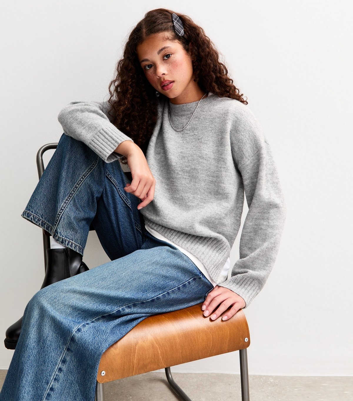 The New Look Grey Knit Crew Neck Jumper is available in sizes 10-11 YEARS, 9 YEARS.