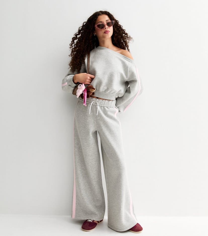 The New Look Grey Jersey Wide Leg Joggers is available in sizes 10-11 years, 12-13 years, 14-15 years.