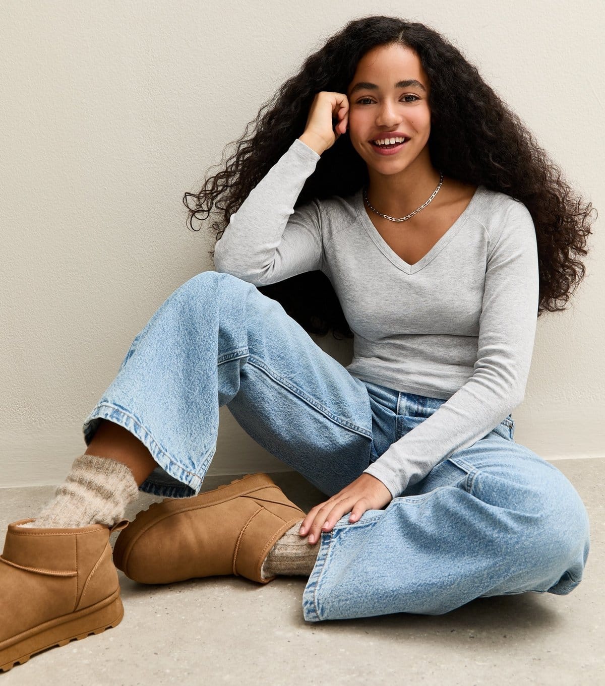 The New Look Mid Grey V-Neck Long Sleeve Top is available in sizes 9 YEARS.