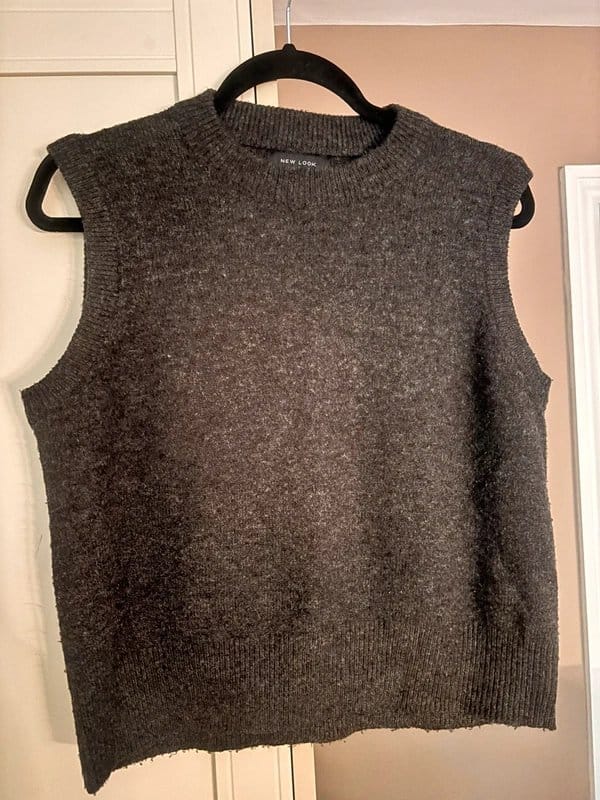 The New Look Charcoal Grey Knitted Vest is available in sizes M.
