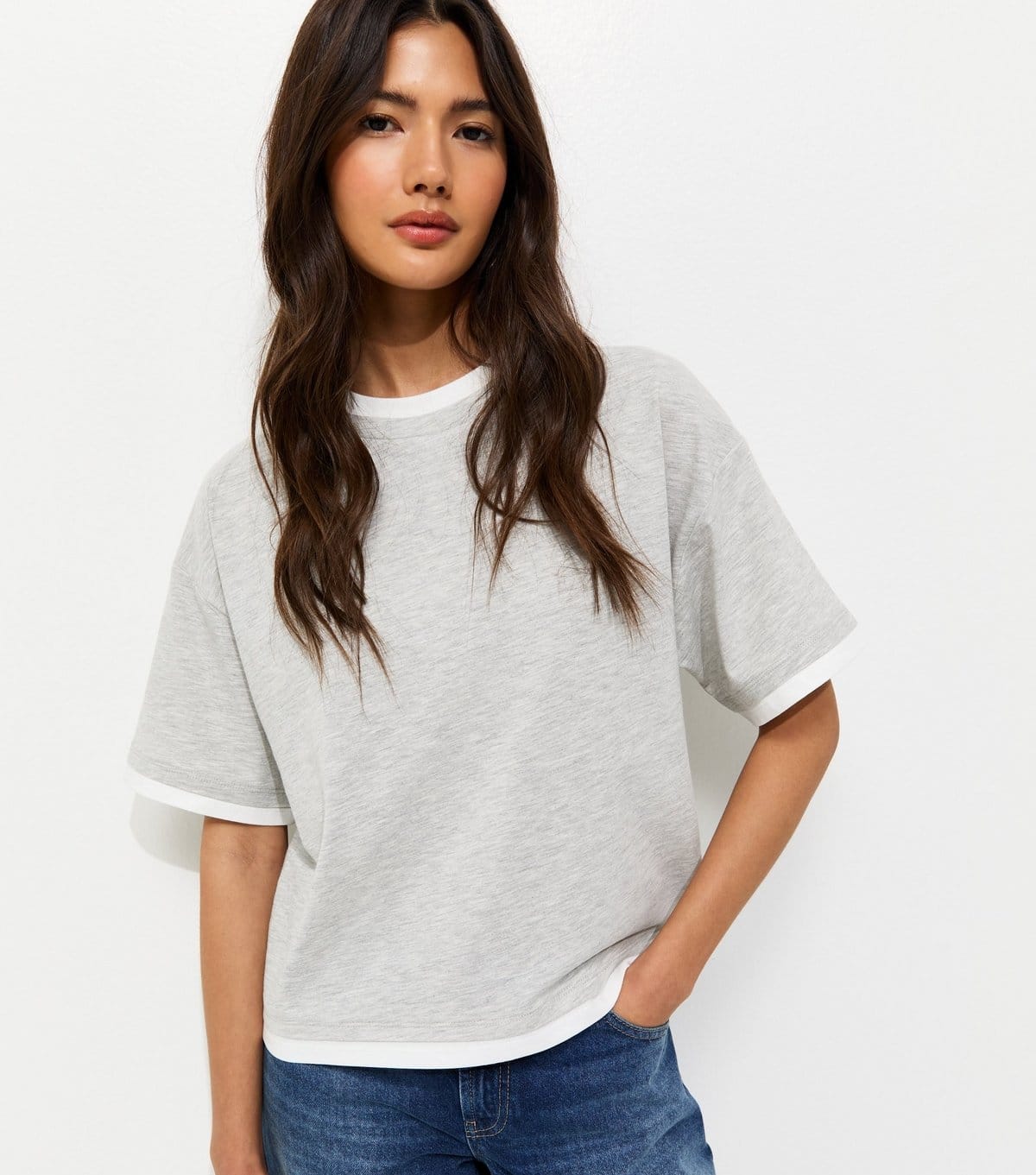 This boxy t-shirt from New Look is a versatile addition to your wardrobe. Featuring a grey marl colour with a white trim, it offers a casual yet stylish look. Ideal for everyday wear, pair it effortlessly with jeans or shorts.