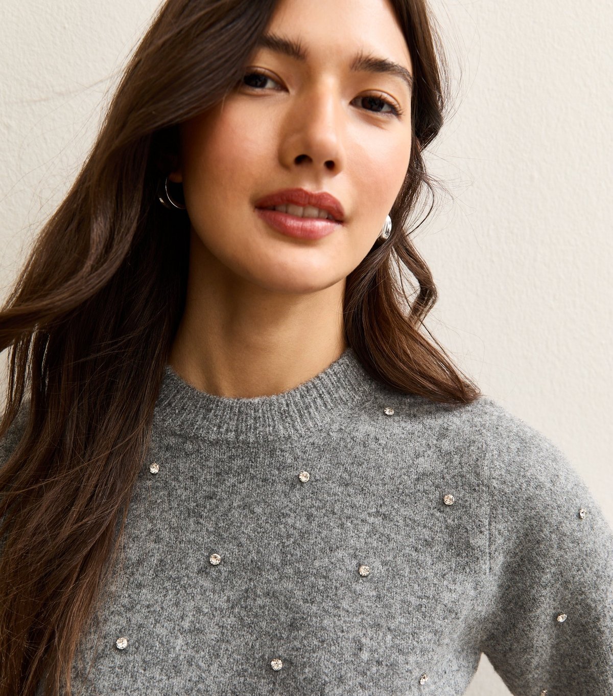 The New Look Mid Grey Diamanté Embellished Crew Neck Top is made from knit.
