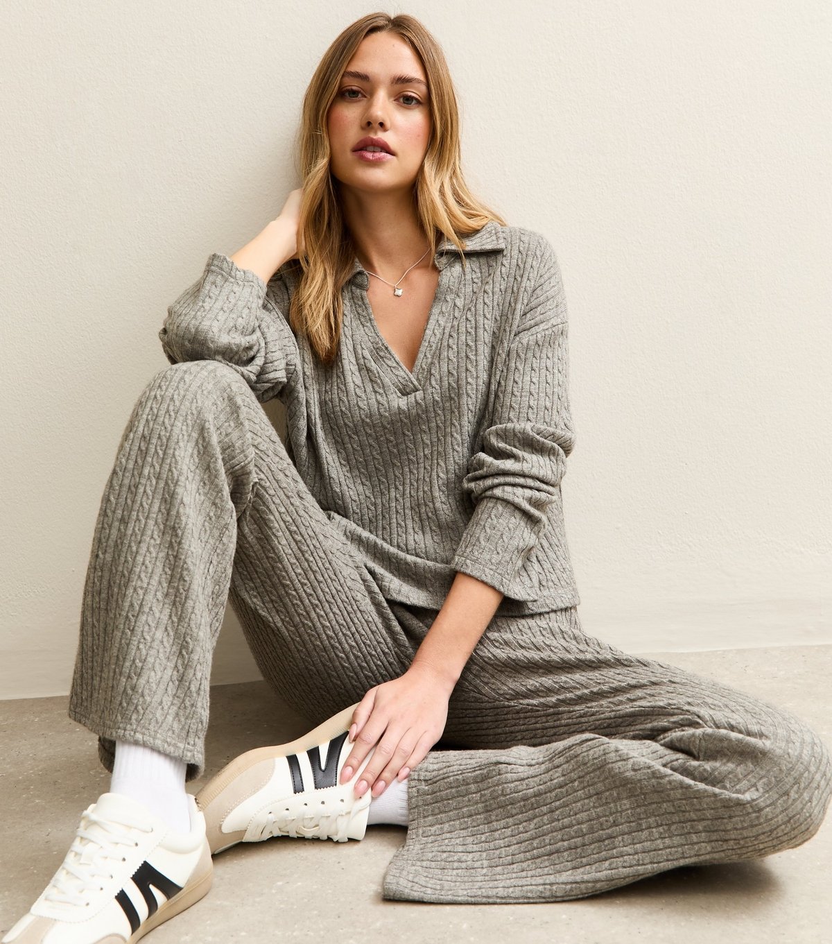 The New Look Mid Grey Cable Knit Flared Trousers is made from soft touch.
