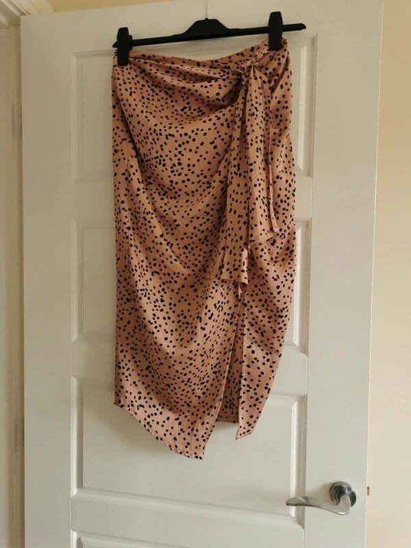 This New Look midi skirt features a silk effect fabric with a polka dot pattern. It has a tie effect on the front and a zip on the back for easy wear. Ideal for casual and evening wear.