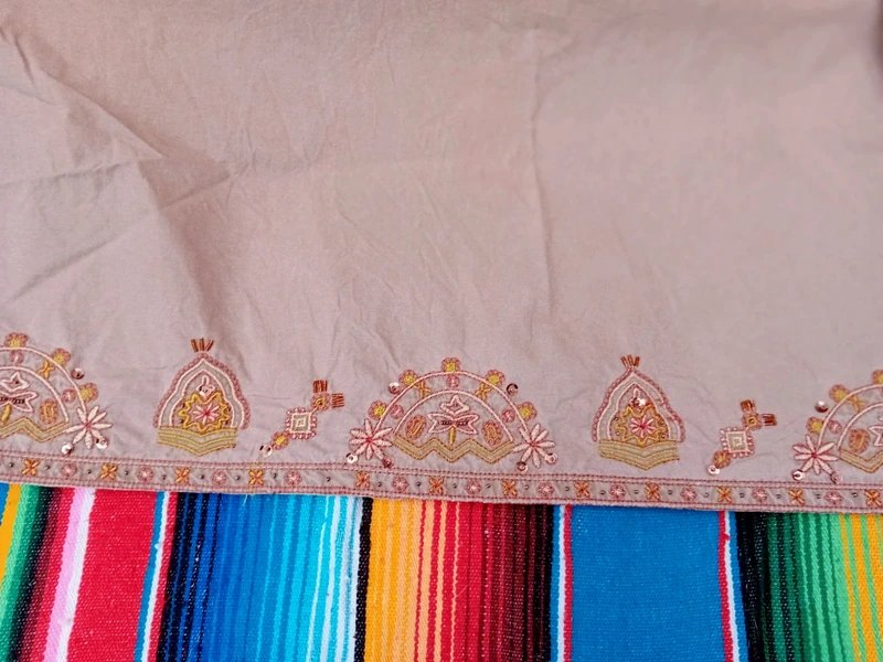 The Inspire New Look tan/beige lightweight, slightly A line, midi skirt, size 16 is adorned with embroidery, sequins and beads to hem and belt ends. Featuring a zip to back closure, it can be worn with or without belt. Ideal for warm summer days, pair it with boots or sandals.