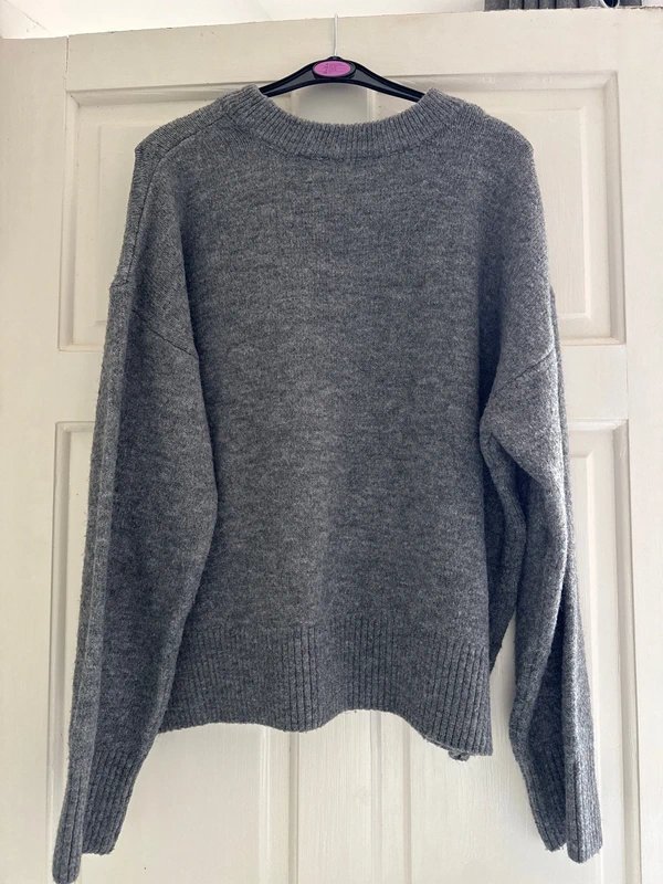 This grey soft knit jumper from New Look features white lettering and a size medium. It's in immaculate condition, perfect for casual wear.