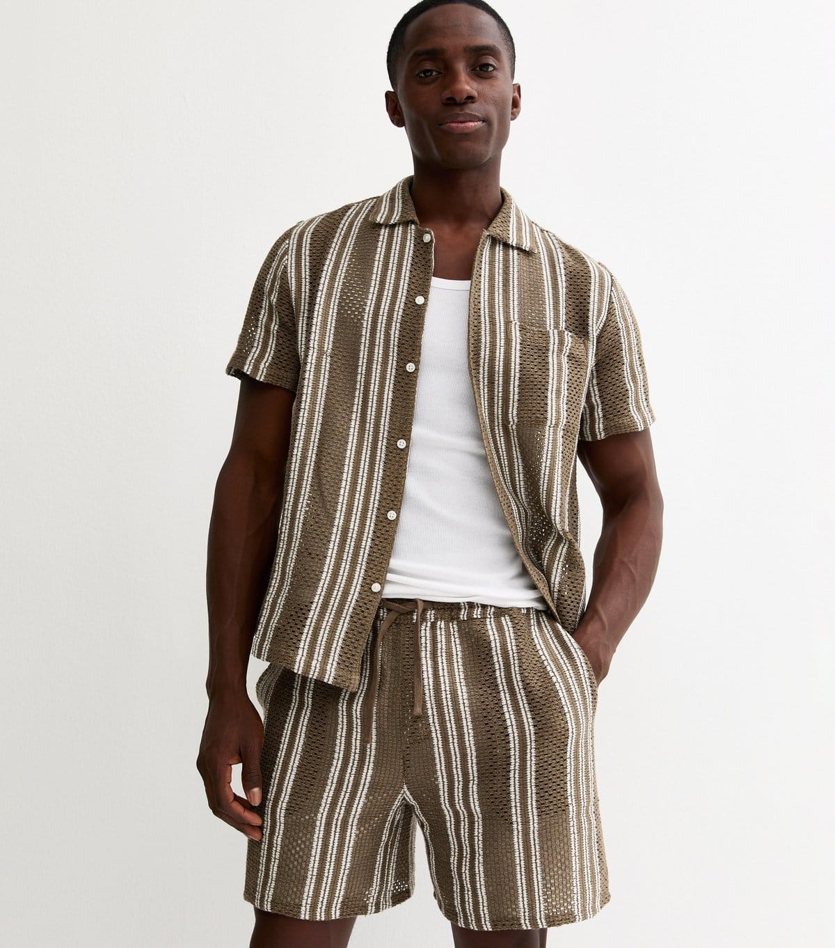 Stylish khaki textured striped shorts from New Look. Perfect for relaxed summer days, these shorts feature a regular fit and a textured fabric with vertical stripes. Ideal for holidays and sunny weekends.