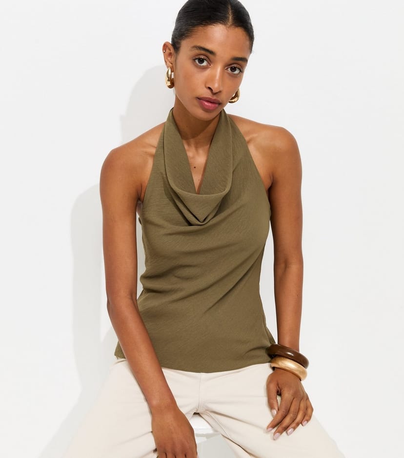The New Look Dark Khaki Cowl Halter Neck Top is ideal for casual, everyday, date-night.