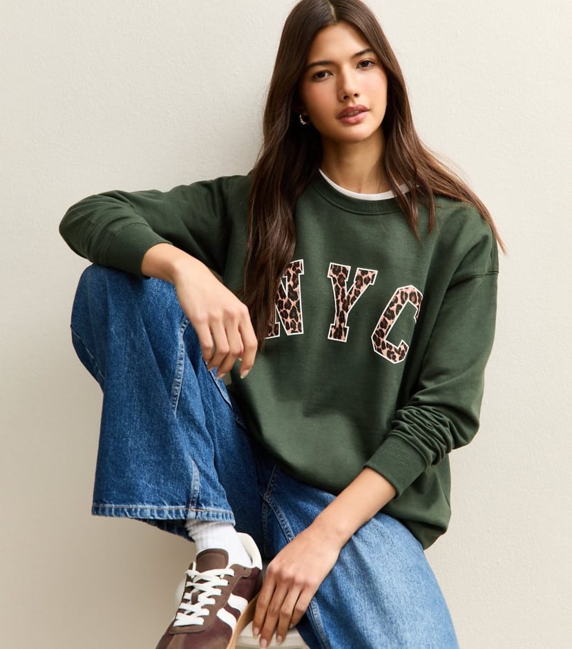 The New Look Dark Khaki NYC Leopard Print Sweatshirt is ideal for casual, everyday.