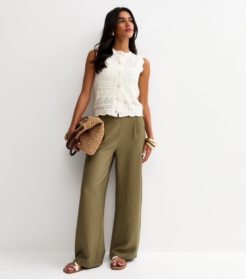 The New Look Khaki Pull On Wide Leg Trousers is ideal for work, casual.