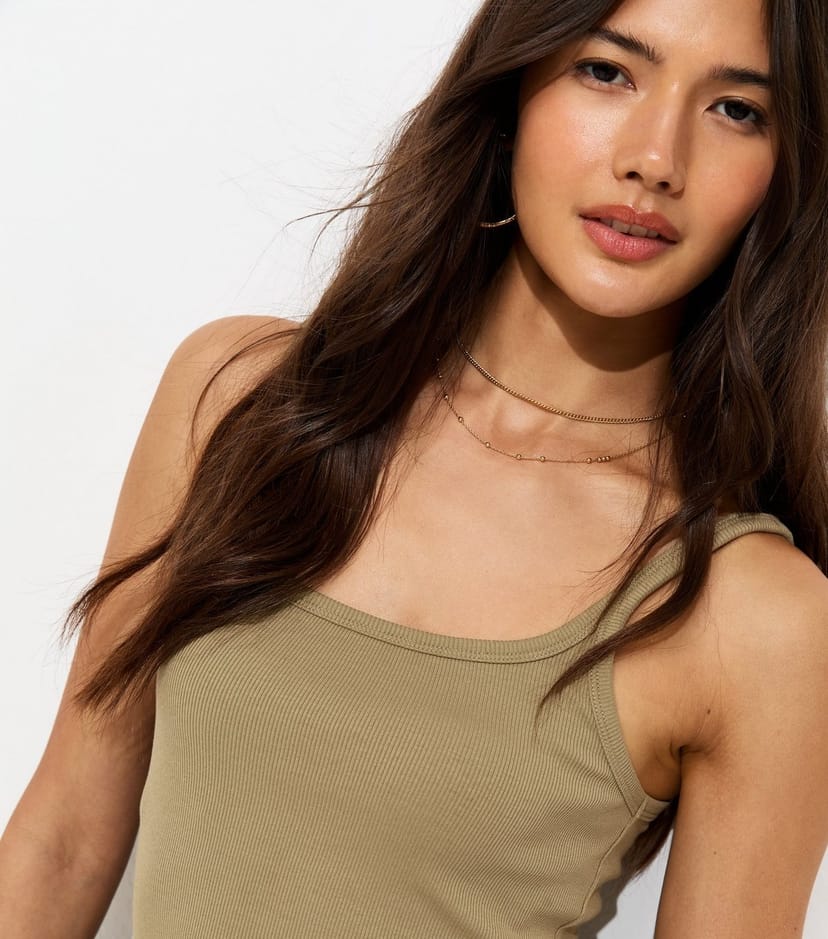 The New Look Khaki Ribbed Strappy Cami Top is ideal for casual, everyday, work.