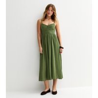 The New Look Dark Khaki V Waist Strappy Mini Dress is made from cotton.