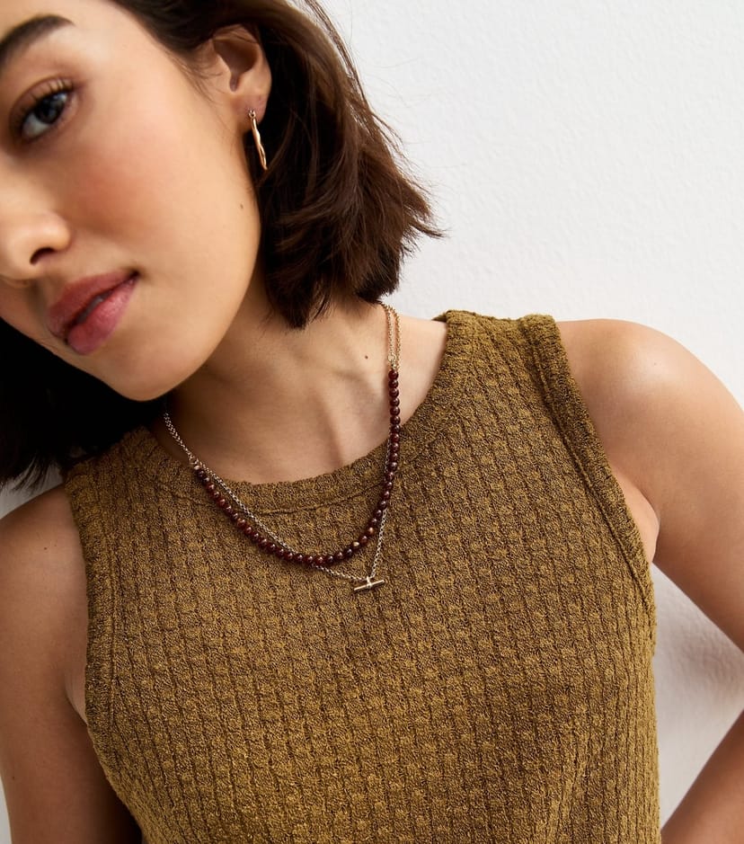 Effortlessly stylish, this khaki-brown textured vest top by New Look features side slits for a modern touch. Ideal for daytime dressing, it offers a relaxed fit and a crew neckline.